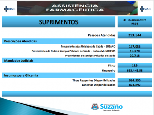 Deu prosseguimento então com os números do SINASC – Sistema de Informações Sobre Nascidos Vivos, seguido por Transporte Sanitário e Assistência Farmaceutica.