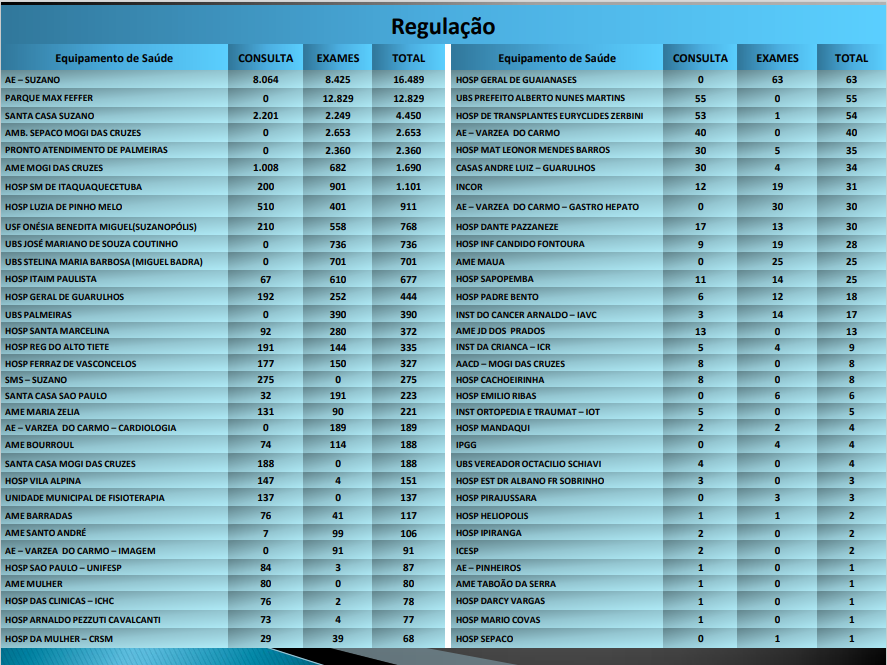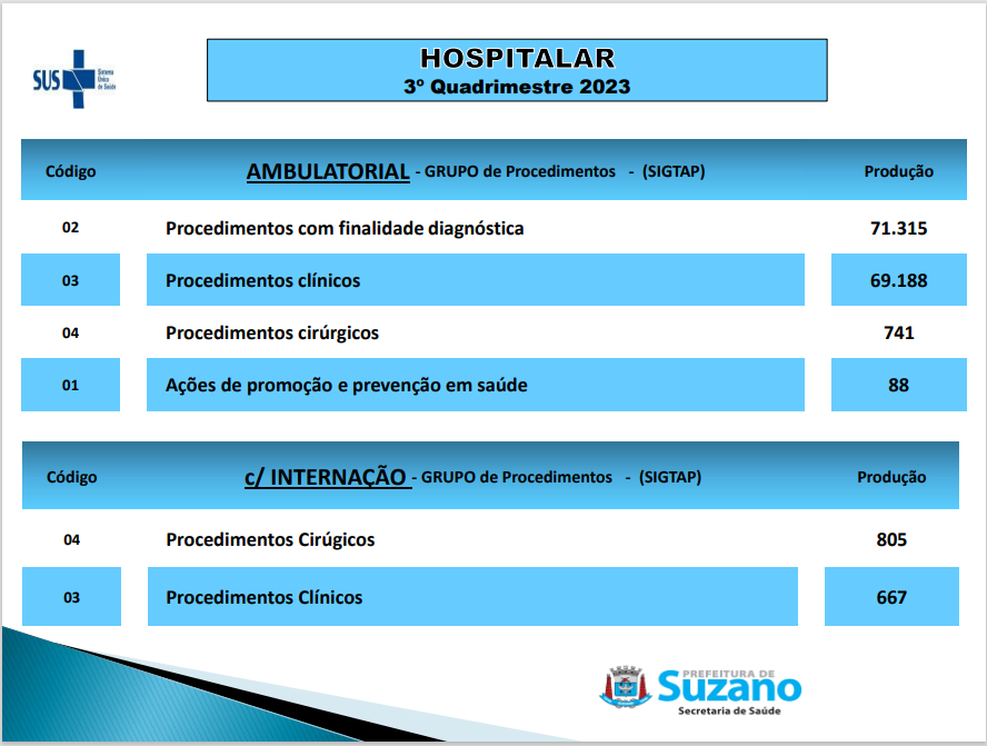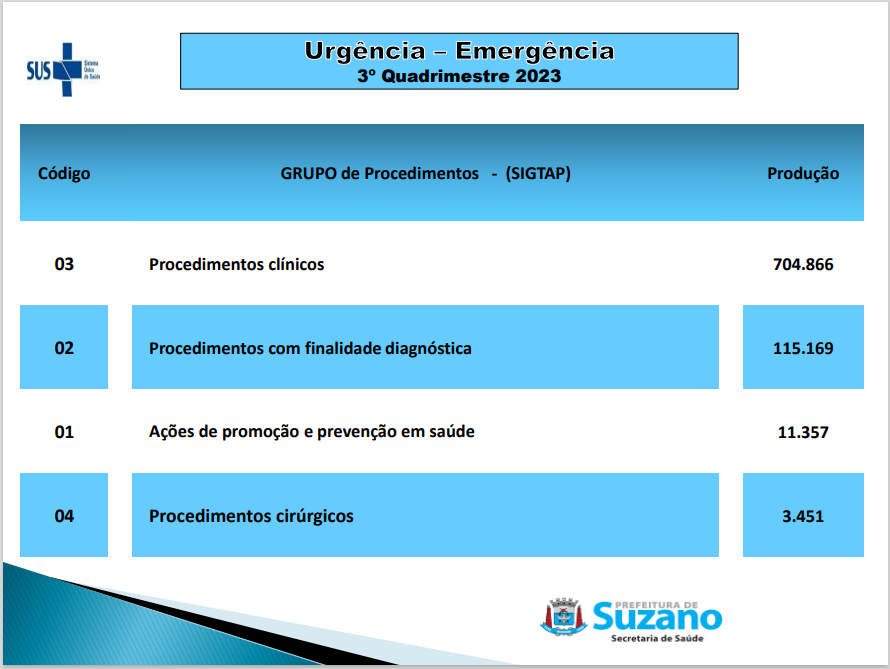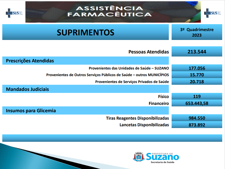 Ata da Segunda Audiência Pública de dois mil e vinte e quatro, realizada na Câmara de Vereadores “Palácio Deputado José de Souza Cândido”, nas dependências do Plenário “Francisco Marques Figueira”, cujo prédio fica situado na rua dos Três Poderes, nº 65, Jardim Paulista, em Suzano-SP. Ao vigésimo nono dia do mês de fevereiro de dois mil e vinte e quatro às dezoito horas e três minutos, deu-se início à Segunda Audiência Pública do Quarto Exercício da Décima Oitava Legislatura, sob a presidência do Ver. Joaquim Antonio da Rosa Neto – Joaquim Rosa – Presidente da Câmara de Suzano – que cumprimentou a todos os presentes, declarou aberta a sessão e anunciou que essa audiência tem a finalidade de analisar a prestação de contas do terceiro quadrimestre de 2023 da Secretaria Municipal de Planejamento e Finanças, conforme determina o artigo 9º no parágrafo 4º da Lei Complementar nº 101 de 04 de maio de 2000. O Presidente solicitou aos Vereadores, Leandro Alves de Faria, Artur Yukio Takayama e Jaime Siunte que recepcionassem no Plenário o Secretário Municipal de Saúde Diego Alves Ferreira ● (nota do setor de Taquigrafia, até a data da presente Audiência Pública, não foi comunicada, publicada ou informada via Diário Oficial, ou qualquer outro meio, a mudança do titular do cargo de Secretário Municipal de Saúde desta municipalidade, no entanto, as credenciais foram assim apresentadas) ●, convidou também para formar a Mesa de Trabalhos, Tânia Mara Porfírio, Diretora de Saúde; e Cintia Steffens Watanabe, Diretora da Rede de Urgência e Emergência. A seguir, convidou a adentrar ao Plenário Priscila Jane Arap, Coordenadora deda Zoonoses; Maria Cristina Perim, Diretora de Vigilância e Saúde; Mizael Rotta de Almeida, Diretor Administrativo; Paula Fróes Oliveira, Coordenadora de Regulação; André Moraes, Diretor d e Laboratório; Matheus Pompeo, Coordenador de Urgência e Emergência; Mauro dos Santos Ferreira, Coordenador de Assistência Farmacêutica; Margarida Mendes, Diretora Administrativa e Obras; e agradeceu a presença de Diomar Novaes, Assistente de Direção. Agradeceu a presença dos Vereadores e passou então a palavra ao Secretario para suas considerações iniciais e sua apresentação. O Secretário iniciou realizando seus cumprimentos e seguiu apresentando os dados se revezando com os demais membros da Mesa que compõem sua equipe.