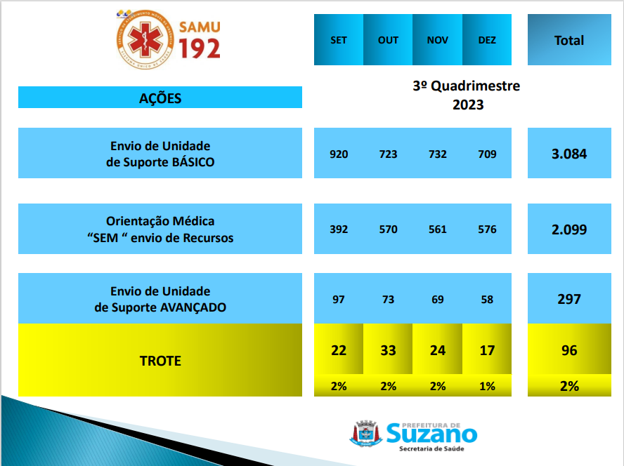 A seguir apresentou os números relacionados ao SAMU e então de Vigilância na Saúde.
