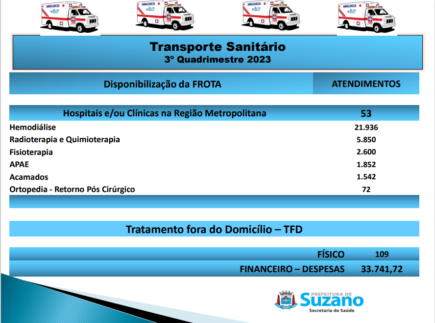 Deu prosseguimento então com os números do SINASC – Sistema de Informações Sobre Nascidos Vivos, seguido por Transporte Sanitário e Assistência Farmaceutica.