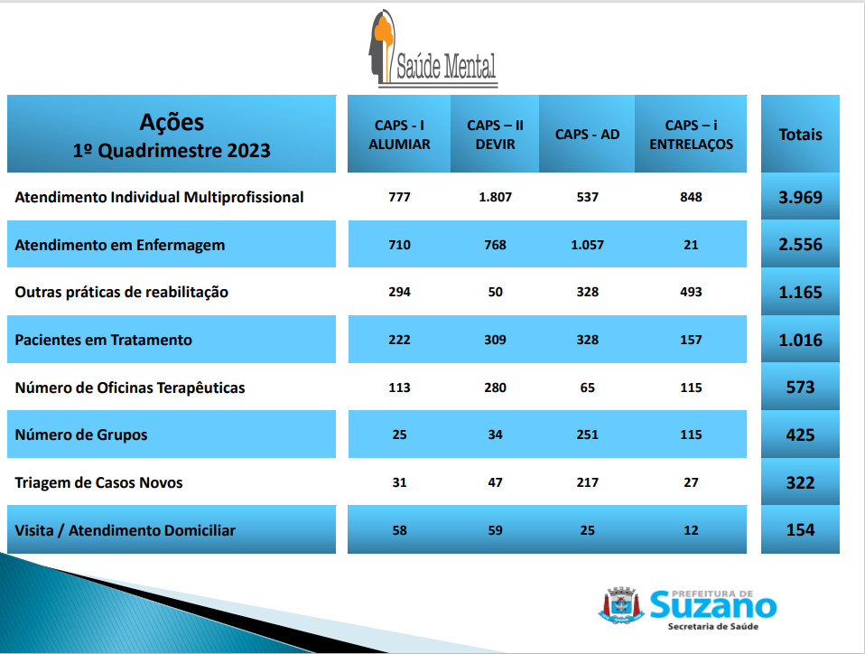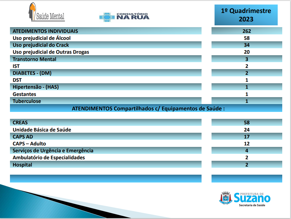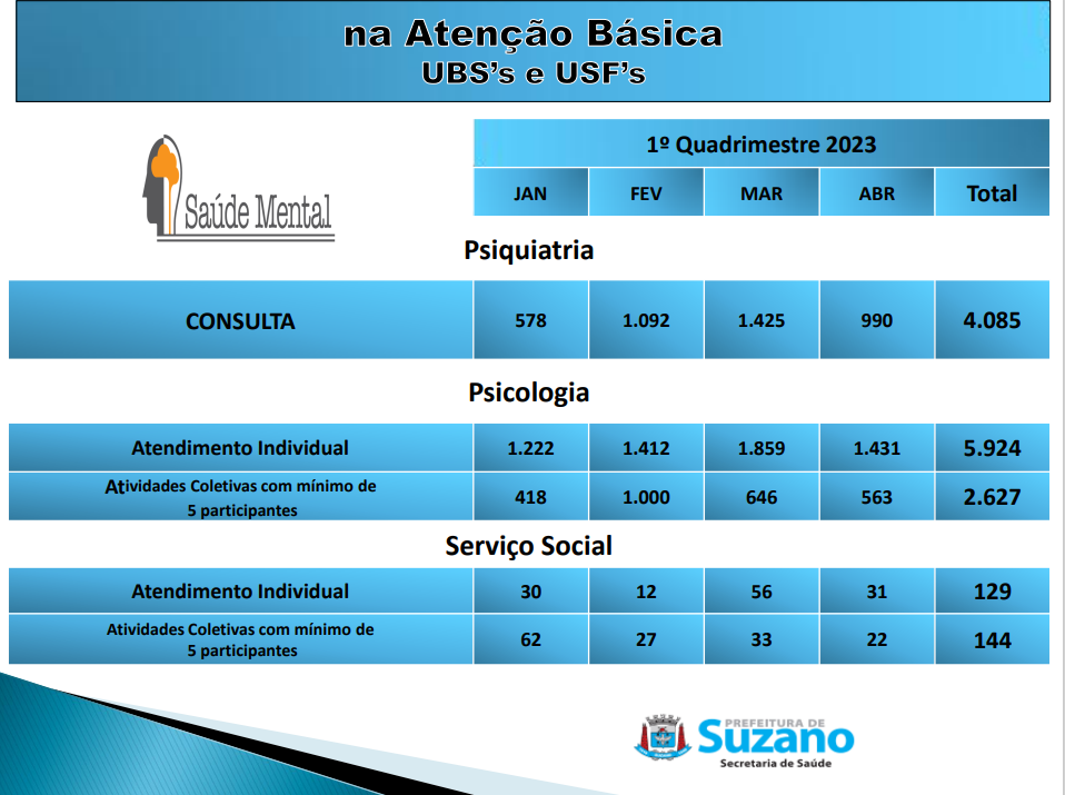 A seguir, ainda com foco em atendimentos voltados à Saúde Mental, o Secretário apresentou a produção ocorrida nas Unidades Básicas de Saúde e nas Unidades de Saúde da Família.