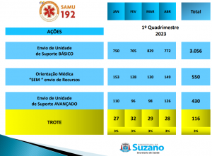 Em seguida apresentou os números referentes ao SAMU.