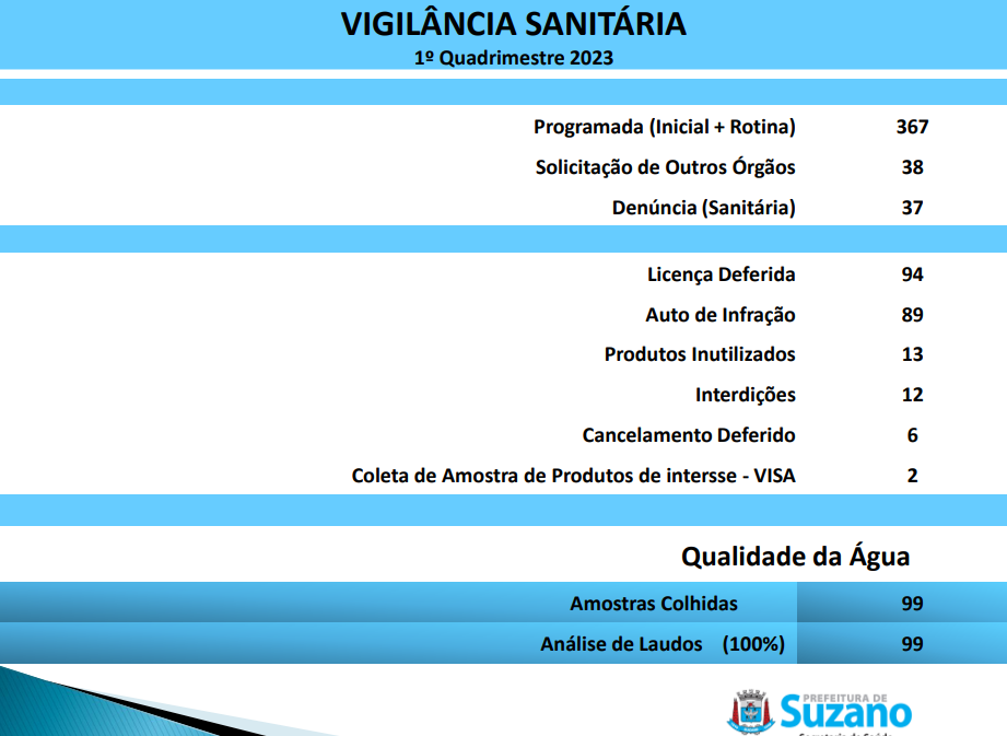 Apresentou logo em seguida os números referentes à atuação a Vigilância Sanitária.