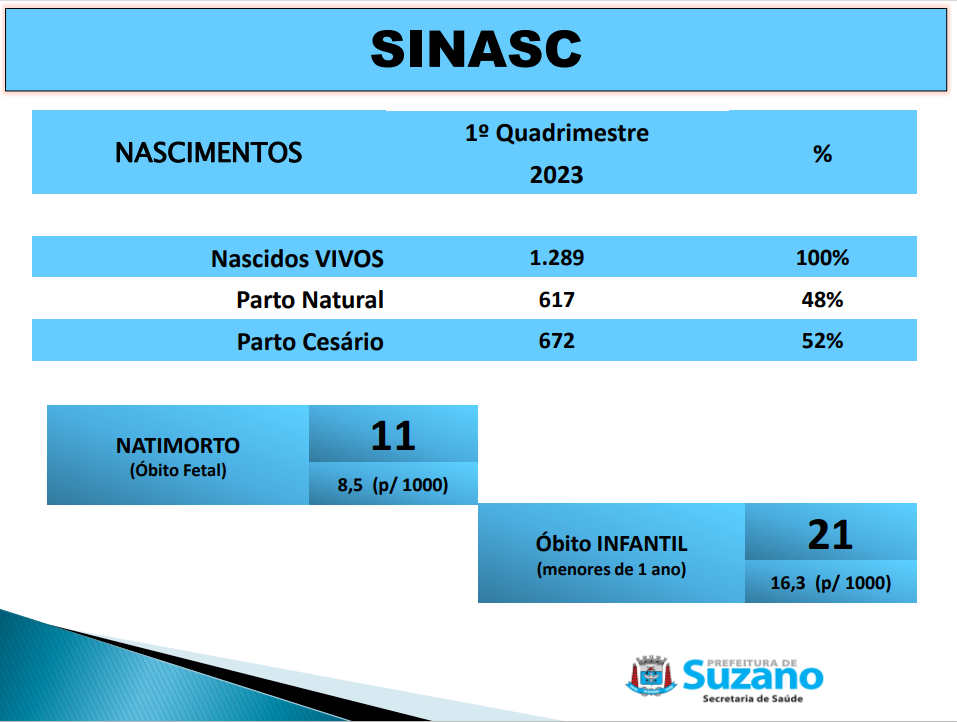 A seguir apresentou o relatório do SINASC, o Sistema de Informação sobre Nascidos Vivos.