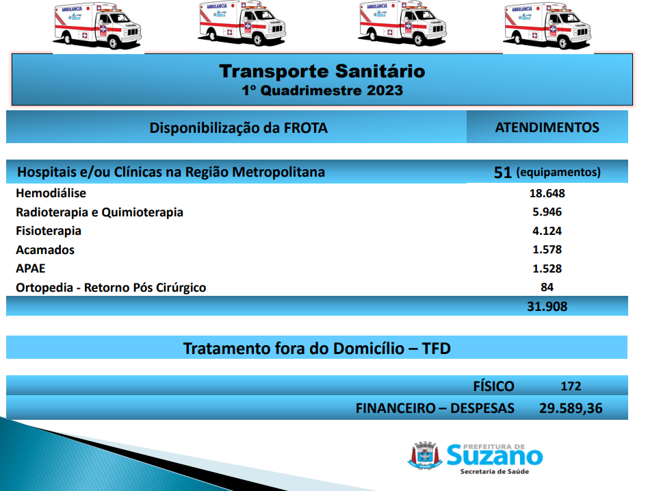 Então o Secretário apresentou os números referentes ao Transporte Sanitário, incluindo equipamentos e procedimentos.