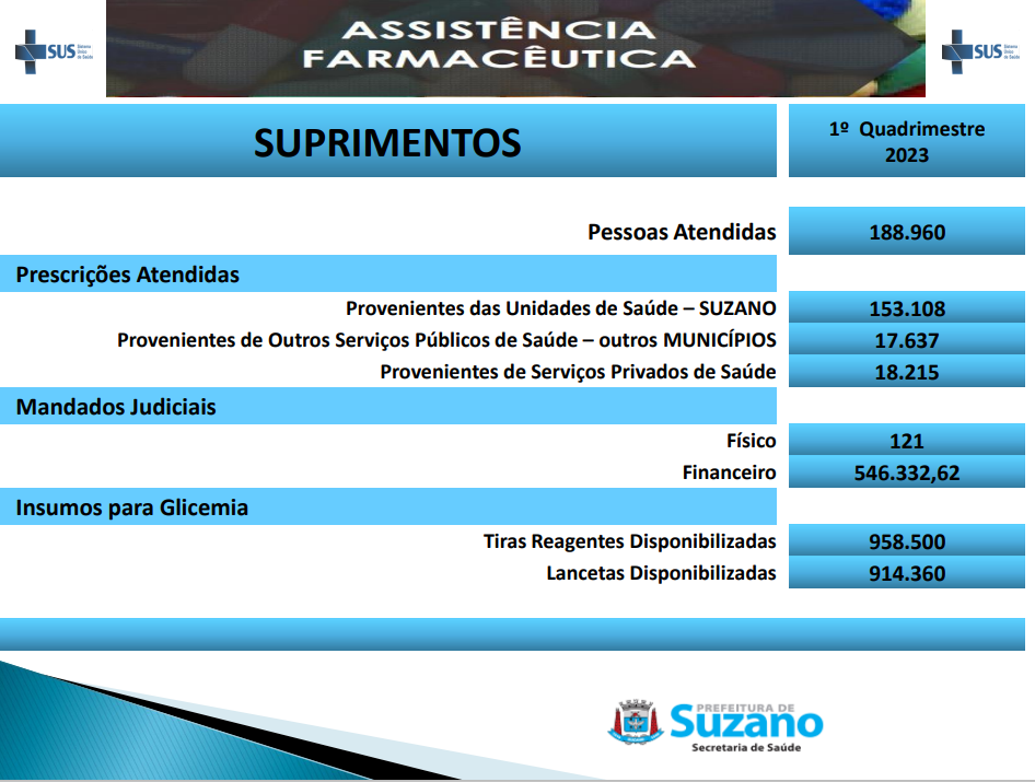 A seguir apresentou os números de Assistência Farmacêutica e destacou os números de insumos para Glicemia.
