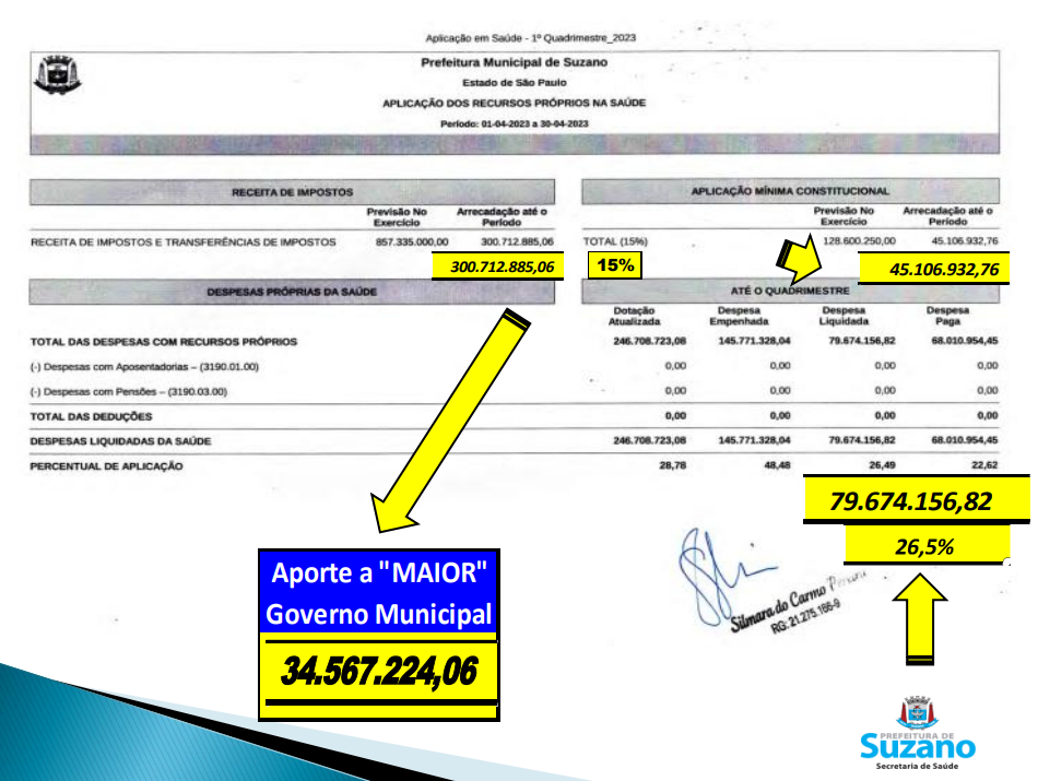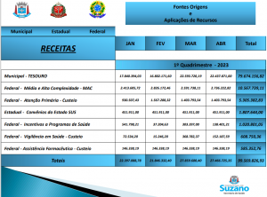 Ata da Oitava Audiência Pública de dois mil e vinte e três, realizada na Câmara de Vereadores “Palácio Deputado José de Souza Cândido”, nas dependências do Plenário “Francisco Marques Figueira”, cujo prédio fica situado na rua dos Três Poderes, nº 65, Jardim Paulista, em Suzano-SP. Ao trigésimo dia do mês de maio de dois mil e vinte e três às dezoito horas e um minuto, deu-se início à Oitava Audiência Pública do Segundo Exercício da Décima Oitava Legislatura, sob a presidência do Ver. Joaquim Antonio da Rosa Neto – Joaquim Rosa – Presidente da Câmara de Suzano – que cumprimentou a todos os presentes e, em nome de Deus e da Pátria, declarou aberta a sessão e anunciou que essa audiência tem a finalidade de analisar a prestação de contas do primeiro quadrimestre de 2023 da Secretaria Municipal de Saúde, conforme determina o artigo 26º no parágrafo 5º da Lei Complementar nº 141 de 13 de janeiro de 2012. O Presidente nomeou uma comissão formada pelos vereadores Artur Yukio Takayama – a Artur Takayama, Lazário Nazaré Pedro, – Lázaro de Jesus e Marcel Pereira da Silva – Marcel da ONG para recepcionar no Plenário o Secretário Municipal de Saúde Pedro Charles Shirakawa Ishi e a Diretora de Saúde, Tânia Mara Porfírio e convidou a adentrarem ao plenário as servidoras e servidores, Cíntia Steffens Watanabe, Diretora da Rede de Urgência e Emergência; Valquíria Helena, Coordenadora de Compras; Sidney Gomes da Cruz, Diretor; Misael rota de Almeida Diretor Administrativo; Margarida Mendes diretora administrativa; Mauro Vaz diretor da vigilância sanitária; André Moraes diretor de laboratório Lucy Rodrigues dos Santos coordenadora de RH; Ricardo Souza assessor do secretário; Diomar Novaes assistente de direção e; Priscila Jane Arap coordenadora da zoonose. A seguir, o Presidente passou a palavra ao Secretário Municipal de Saúde Pedro Charles Shirakawa Ishi, para fazer suas considerações iniciais. O Secretário iniciou agradecendo a presença de todos, dos servidores, dos vereadores, e iniciou a apresentação.