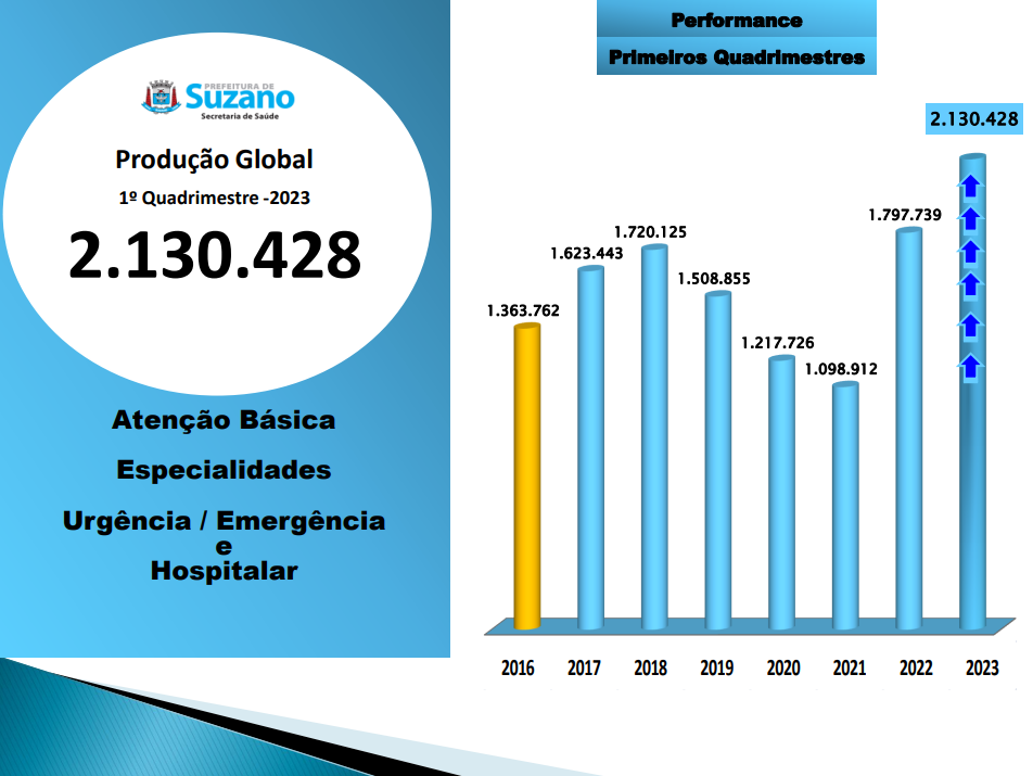 Dois milhões, cento e trinta mil, quatrocentos e vinte e oito procedimentos. O Secretário agradeceu a toda a equipe pelo trabalho realizado que quebrou registrou número recorde e reestabeleceu a subida do atendimento após as quedas provenientes do período da pandemia de covid-19, sendo 27% deste total enquadrado na atenção básica.