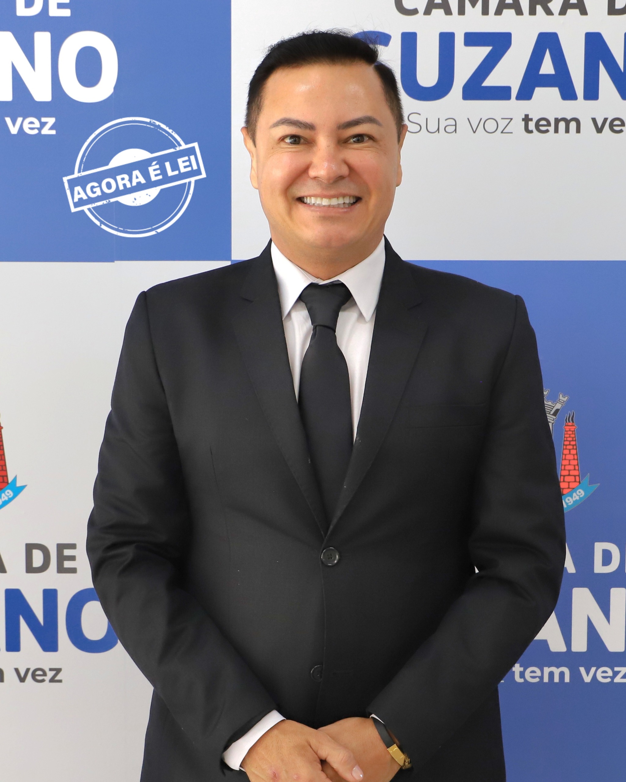 Descrição da imagem #PraCegoVer: vereador Marcel da ONG usa terno e gravata pretos.