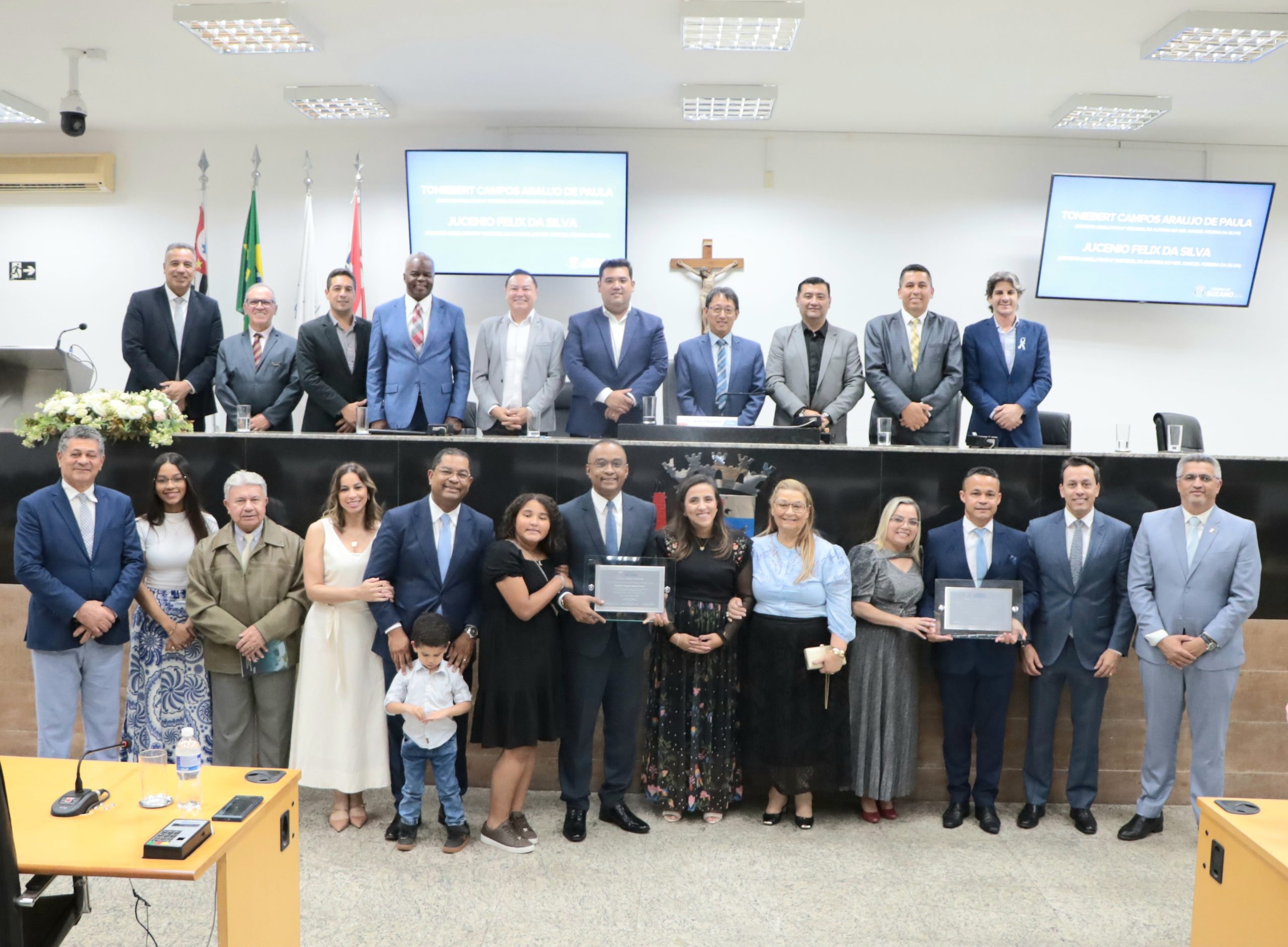 A Câmara de Suzano entregou ontem (3) os títulos de Cidadão Suzanense aos pastores Jucenio Felix da Silva e Toniebert Campos Araujo de Paula. As homenagens são de autoria do vereador Marcel Pereira da Silva (PRD), o Marcel da ONG.