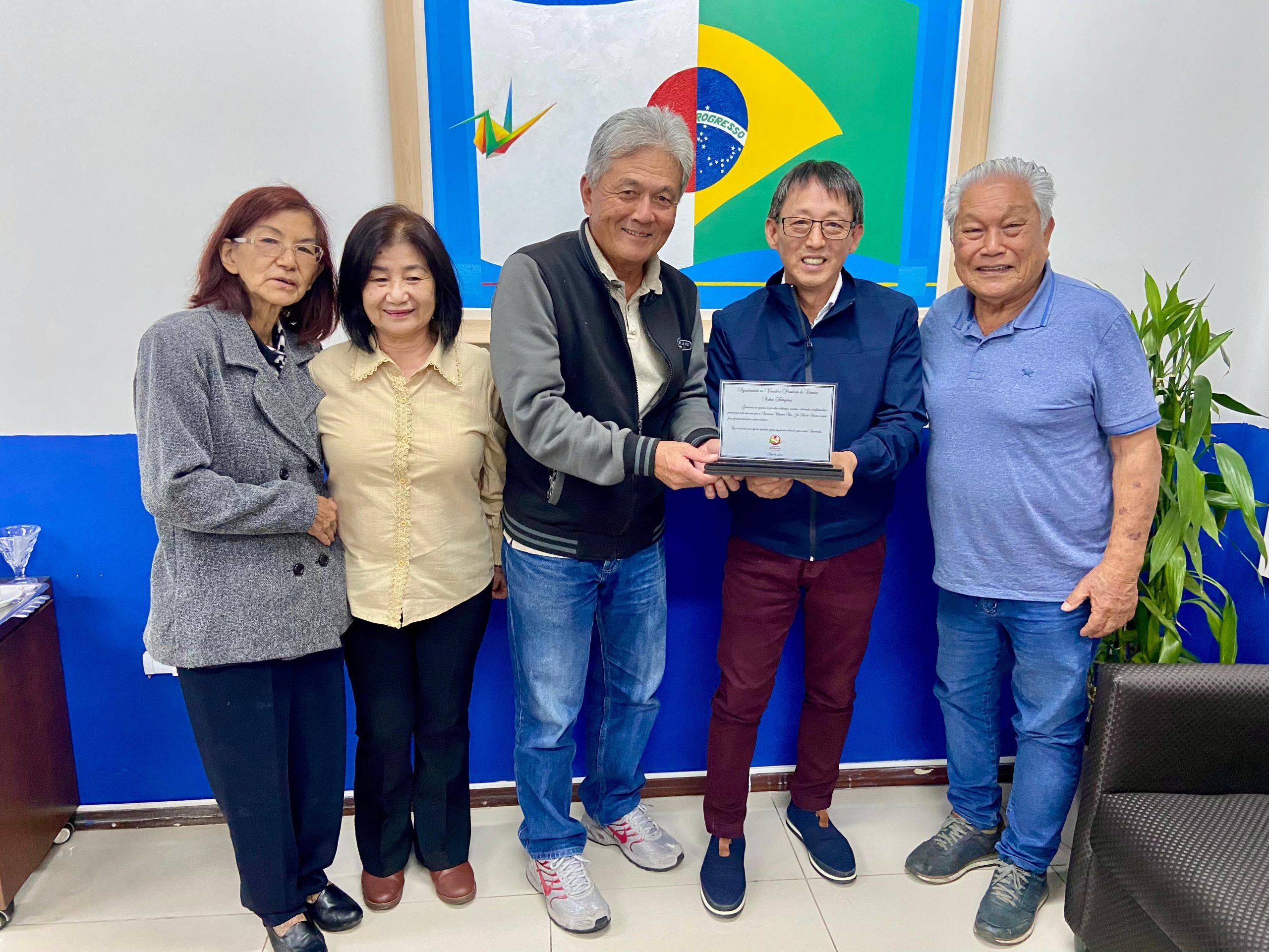A placa com a homenagem foi entregue pelo presidente da entidade, Sergio Yonamine; pelos membros da diretoria Roberto Kajiwara e Chiemi Shimabukuro; e pela presidente do Fujin-Bu e professora de dança odori Yoshimi Guishitomi Barbieri.