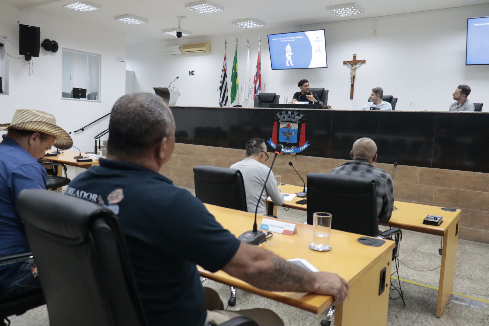 A Secretaria de Saúde apresentou ontem (4) números da vacinação no município em audiência pública realizada na Câmara de Suzano. A reunião foi comandada pelo presidente da Comissão Permanente de Saúde do Legislativo, o vereador Rogerio Castilho (PSB), e contou com as presenças dos vereadores José de Oliveira Lima (MDB), o Zé Oliveira; Givaldo Freitas dos Santos (PL), o Baiano da Saúde, que são respectivamente relator e membro da comissão; Artur Takayama (PL); Jaime Siunte (Avante); e Josias Ferreira Silva (PCdoB), o Josias Mineiro.