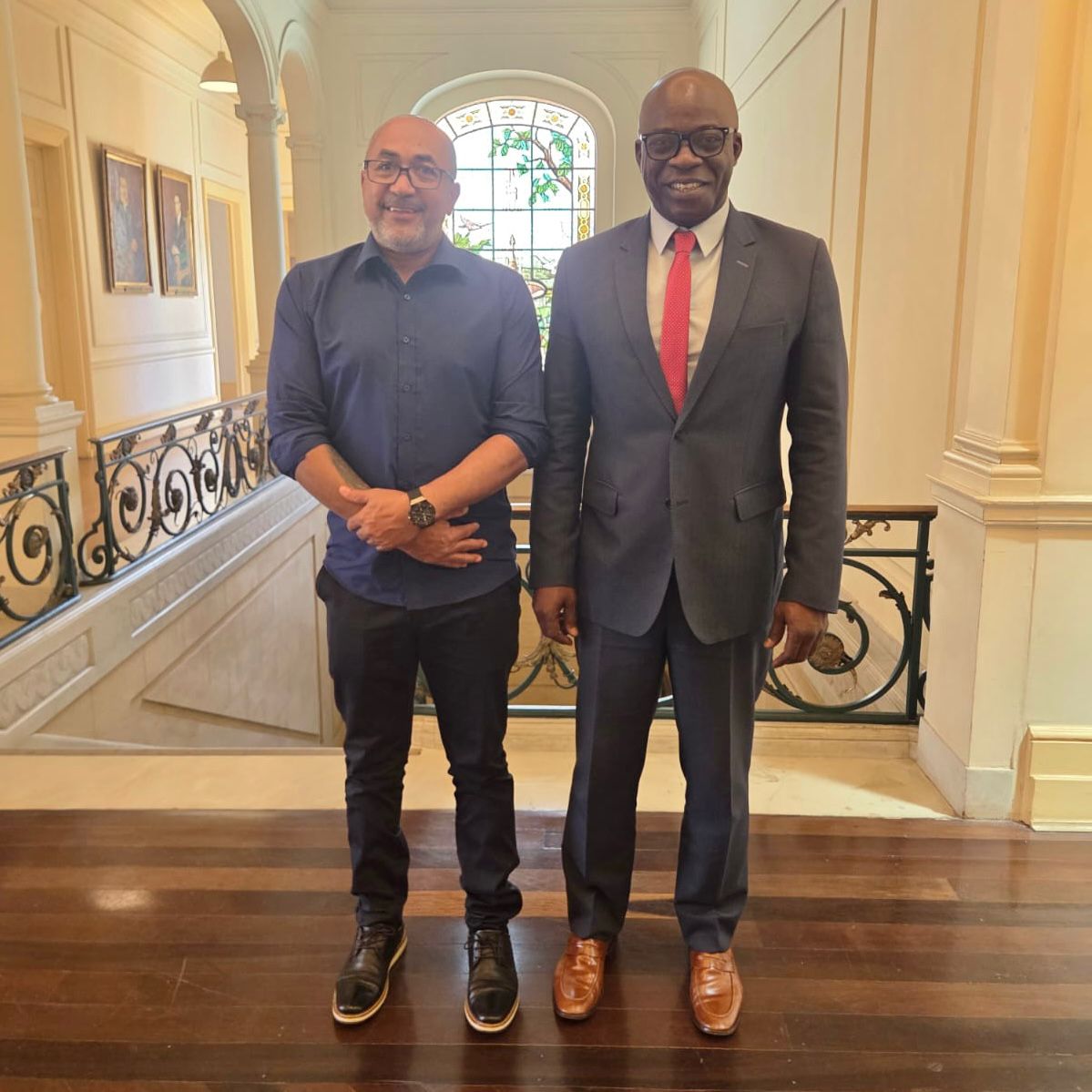 Descrição da imagem #PraCegoVer: vereador Josias Mineiro e coordenador de Políticas para a População Negra do Estado de São Paulo, Robson Ferreira. Os dois estão em pé.