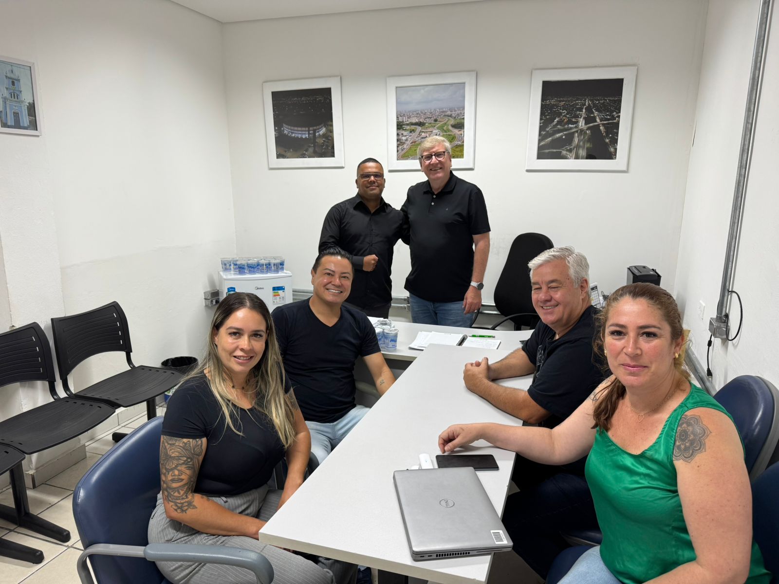 O vereador Marcel Pereira da Silva (PRD), o Marcel da ONG, participou na manhã de hoje (9) de uma reunião com o secretário de Manutenção e Serviços Urbanos, Samuel de Oliveira, para solicitar melhorias na rua Mitsuharu Matsushita, na Chácara Estância Paulista. Ele estava acompanhado dos moradores Roberta Rossi, Darly Leal e Danilo Mello, que é o síndico do Condomínio Villa Veneto.
